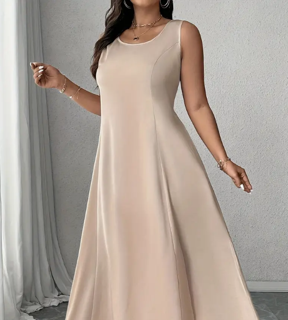 Abito lungo in tessuto morbido e fluido che scivola elegantemente sulla figura