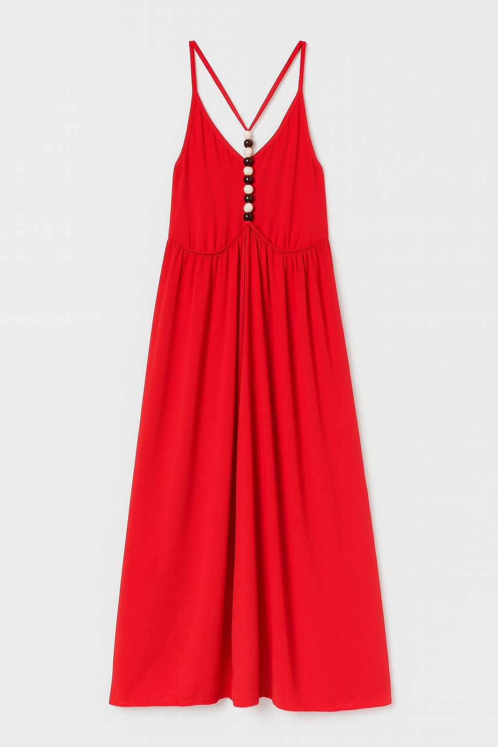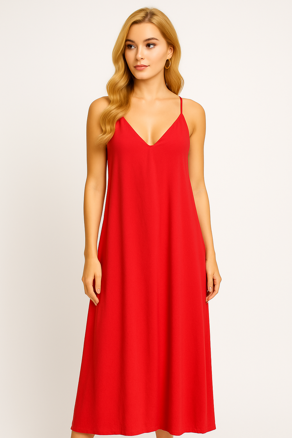 Elegante e sensuale, questo abito lungo rosso è perfetto per le serate estive, occasioni speciali o eventi glamour.