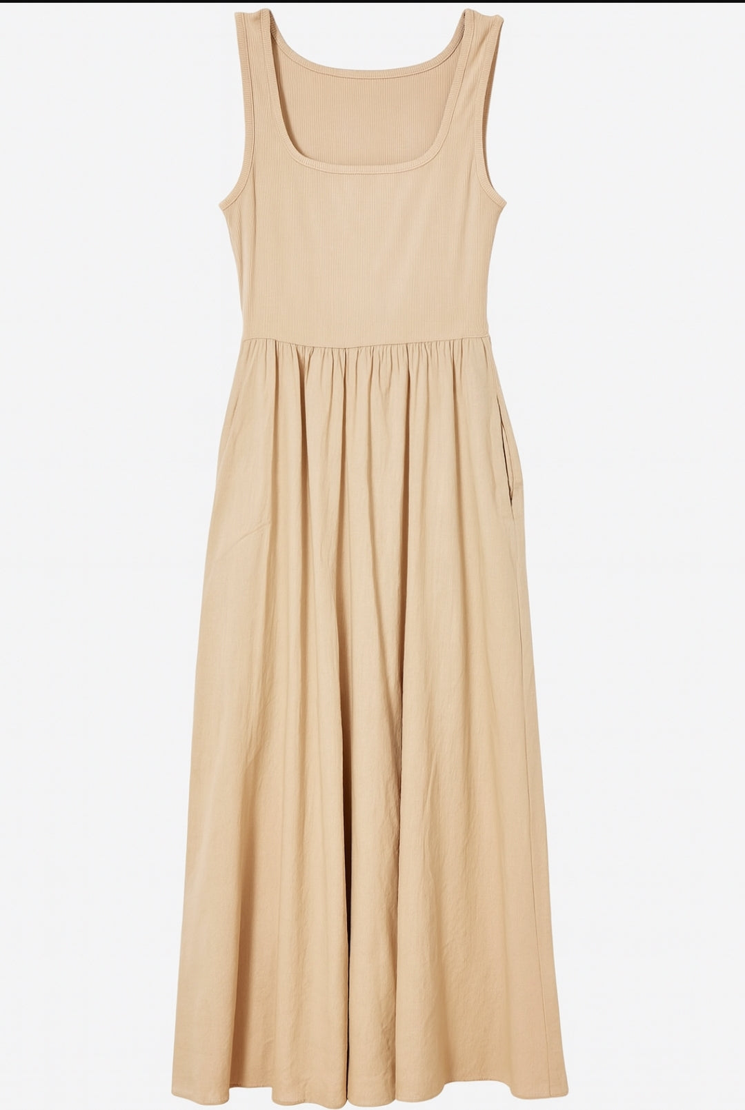 Abito Lungo Senza Maniche in Cotone Beige