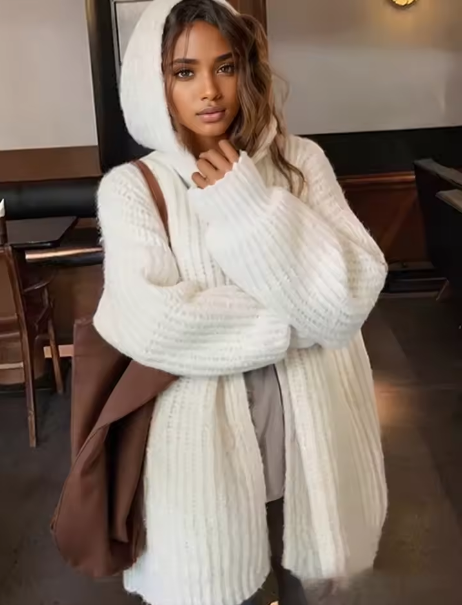 Cardigan Donna Oversize con Cappuccio – Maglione Invernale Morbido