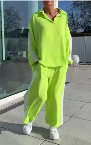 Porta un’esplosione di colore nel tuo guardaroba con questo completo estivo dal taglio ampio e moderno, perfetto per look casual ma d’effetto.